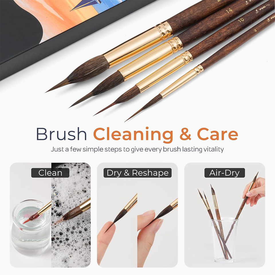 Pinceaux aquarelle de haute qualité, 4 pièces, manche en bois, poils de zibeline, pointe extra longue synthétique pour les détails fins