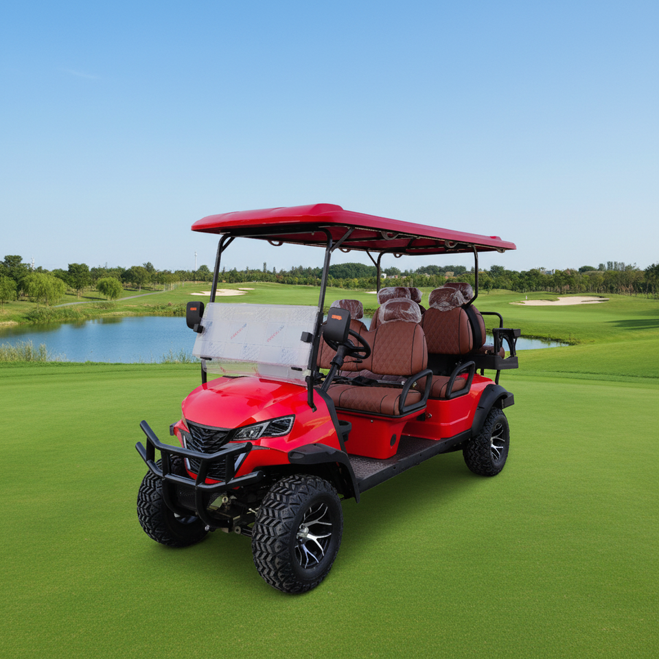 Voiturette de golf de haute qualité 5-6 places, nouvelle énergie, batterie au lithium, chariot portable, transport sur le terrain de golf, en stock