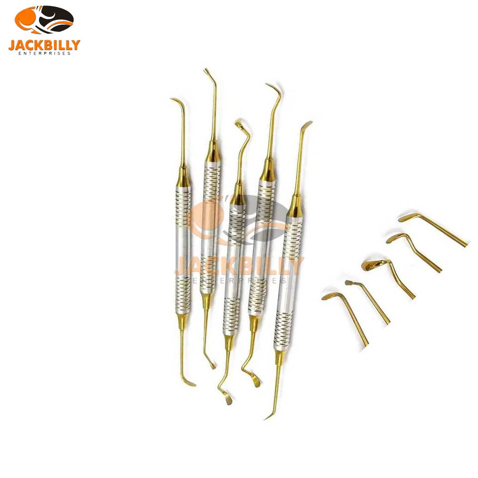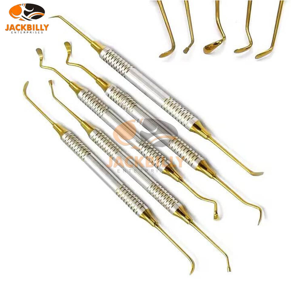Kit de levage de sinus de 5 pièces de haute qualité avec cassette en acier inoxydable ensemble d'instruments dentaires plaqués or pour la chirurgie buccale professionnelle