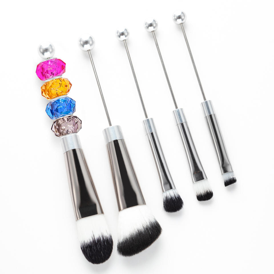 Ensemble de 5 pinceaux à éventail en fibre de laine avec manche en métal coloré de haute qualité pour le maquillage du visage - Utilisation quotidienne