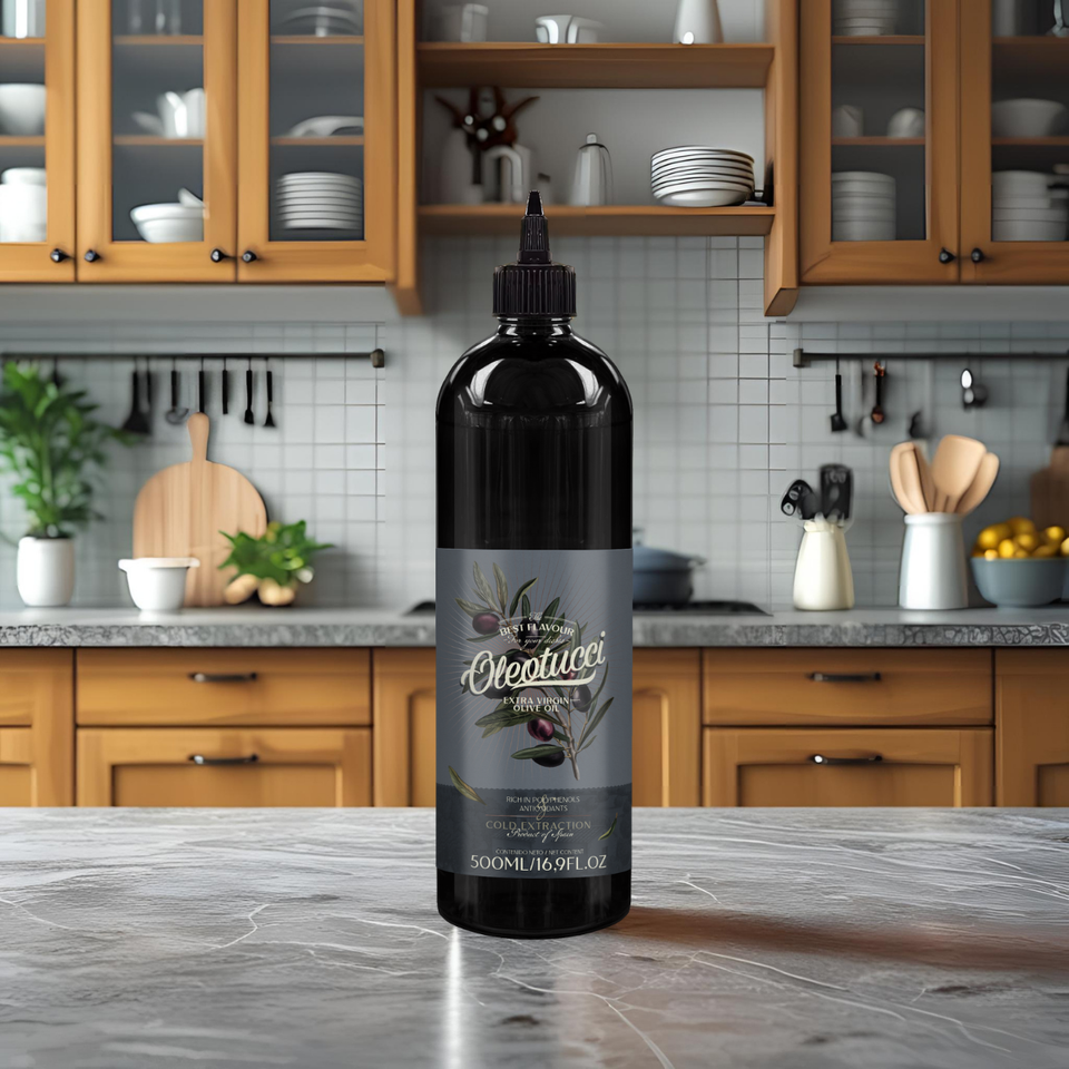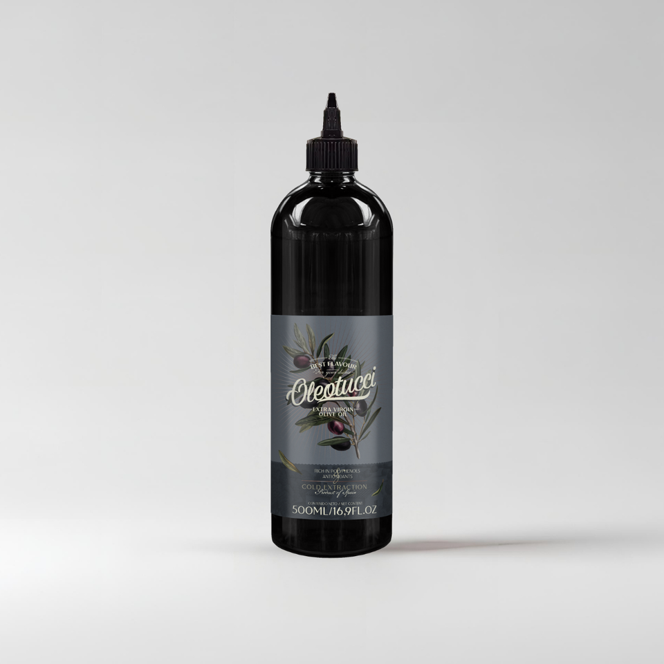 Bouteille à presser PET "Oleotucci" d'huile d'olive extra vierge de haute qualité de 500ml pour la cuisine et les vinaigrettes