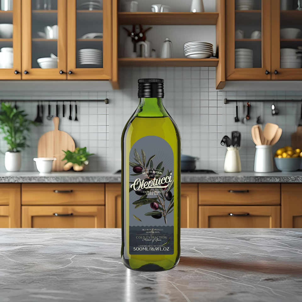 Bouteille en verre de haute qualité 500ml d'huile d'olive vierge "Oleotucci" pour la cuisine et les vinaigrettes de Bertoli
