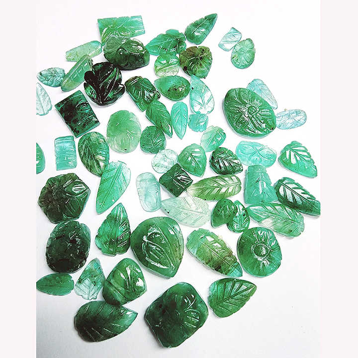 Haute Qualité 55pcs Pierres Précieuses Émeraude Naturelles 10mm à 19mm Sculpture Feuille 221cts Lot Lâche Feuille Verte Coupe Colliers Top IROC Ventes
