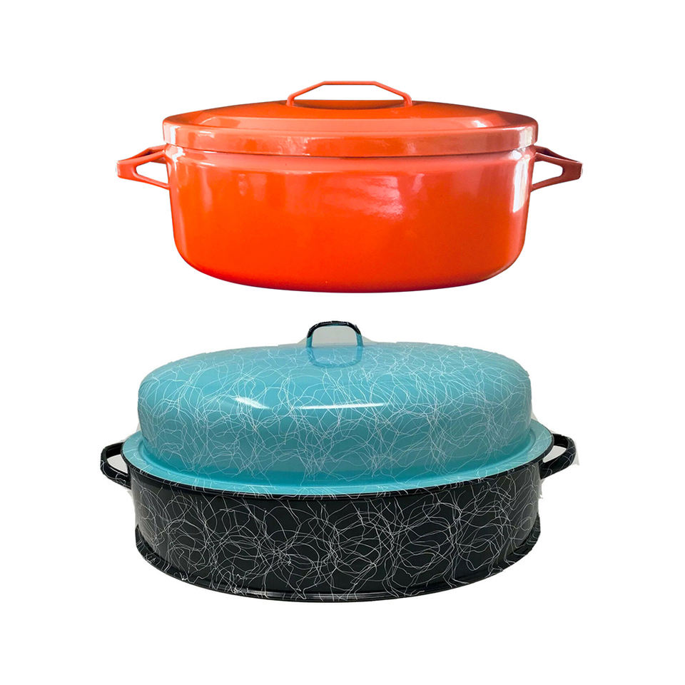 3 l 7l — mini-casseroles 2 en 1 ovales en fonte émail blanc, haute qualité avec couvercle décoré
