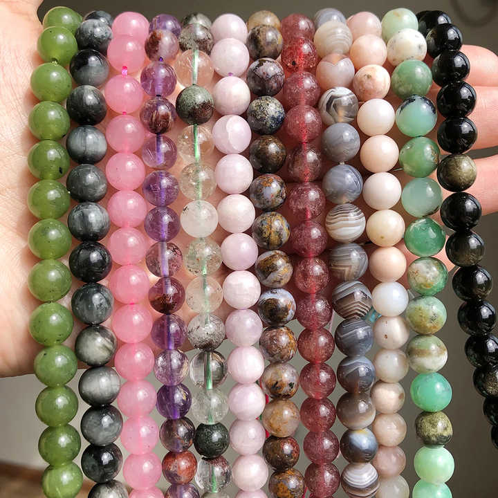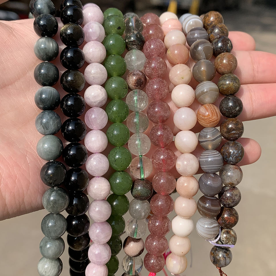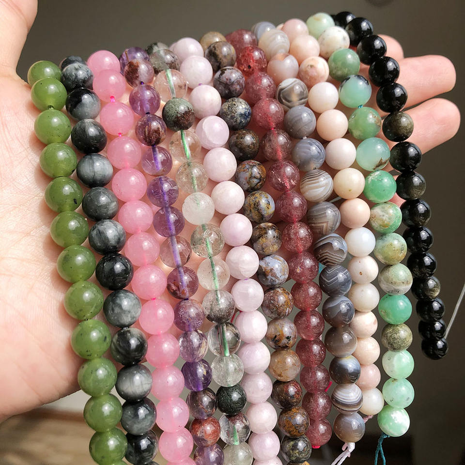 Perles rondes en pierre naturelle de haute qualité 6/8/10 mm AA, quartz rose/jade/malachite, pour la fabrication de bijoux, 7,5 pouces
