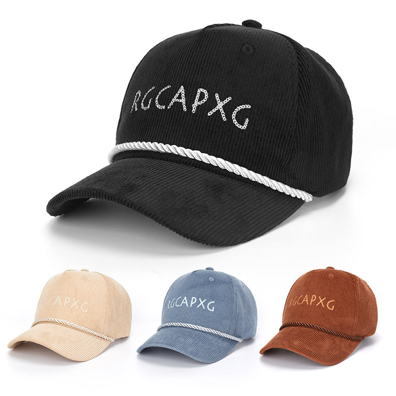 Casquette de baseball en velours côtelé 6 panneaux de haute qualité, logo personnalisé, lettres ajustables, style urbain, mode extérieure, protection UV, pour hommes et femmes