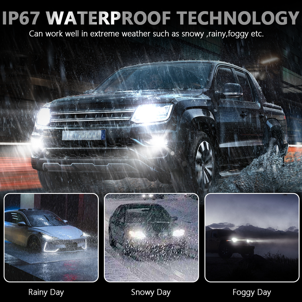 Phare LED de projecteur bi-lentille 3 pouces 66W de haute qualité 6600lm 6000K 12V Super Puissant Étanche pour Conduite, Ajustement Universel