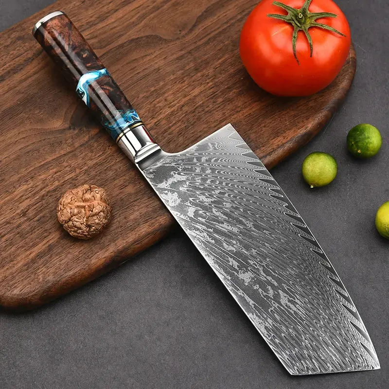 Haute qualité 7 "en acier inoxydable damas forgé couperet de cuisine écologique à la main Chef couteaux de boucher main réglable