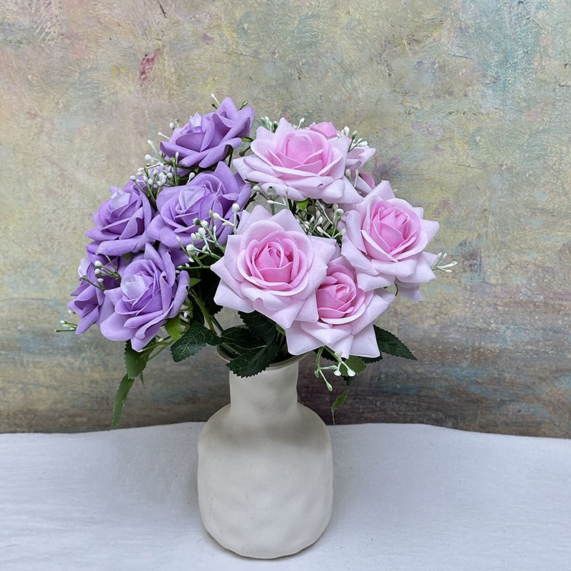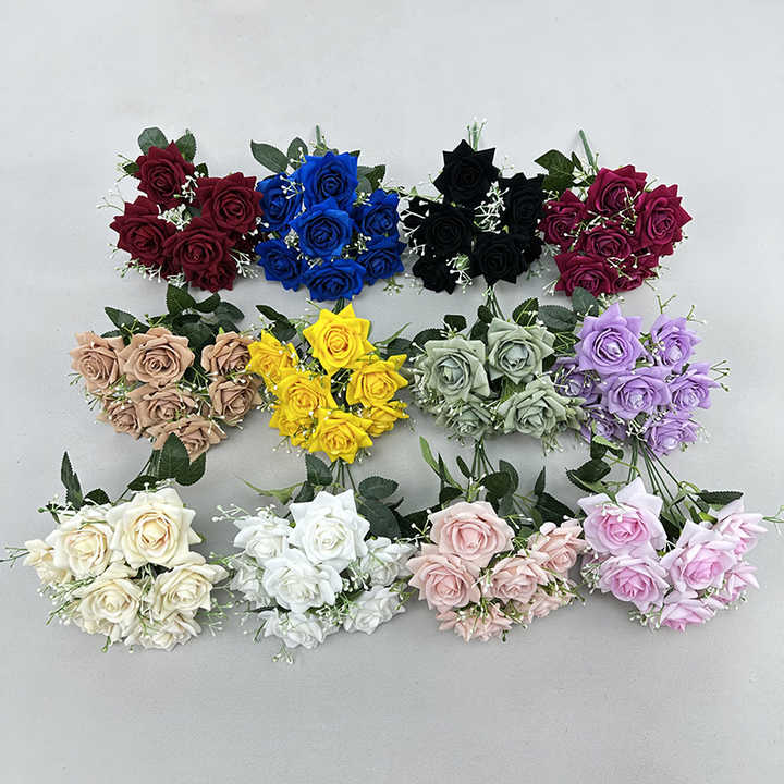 Roses artificielles en velours de haute qualité à 7 têtes, petites roses en forme de corne, vente en gros pour la décoration de la maison