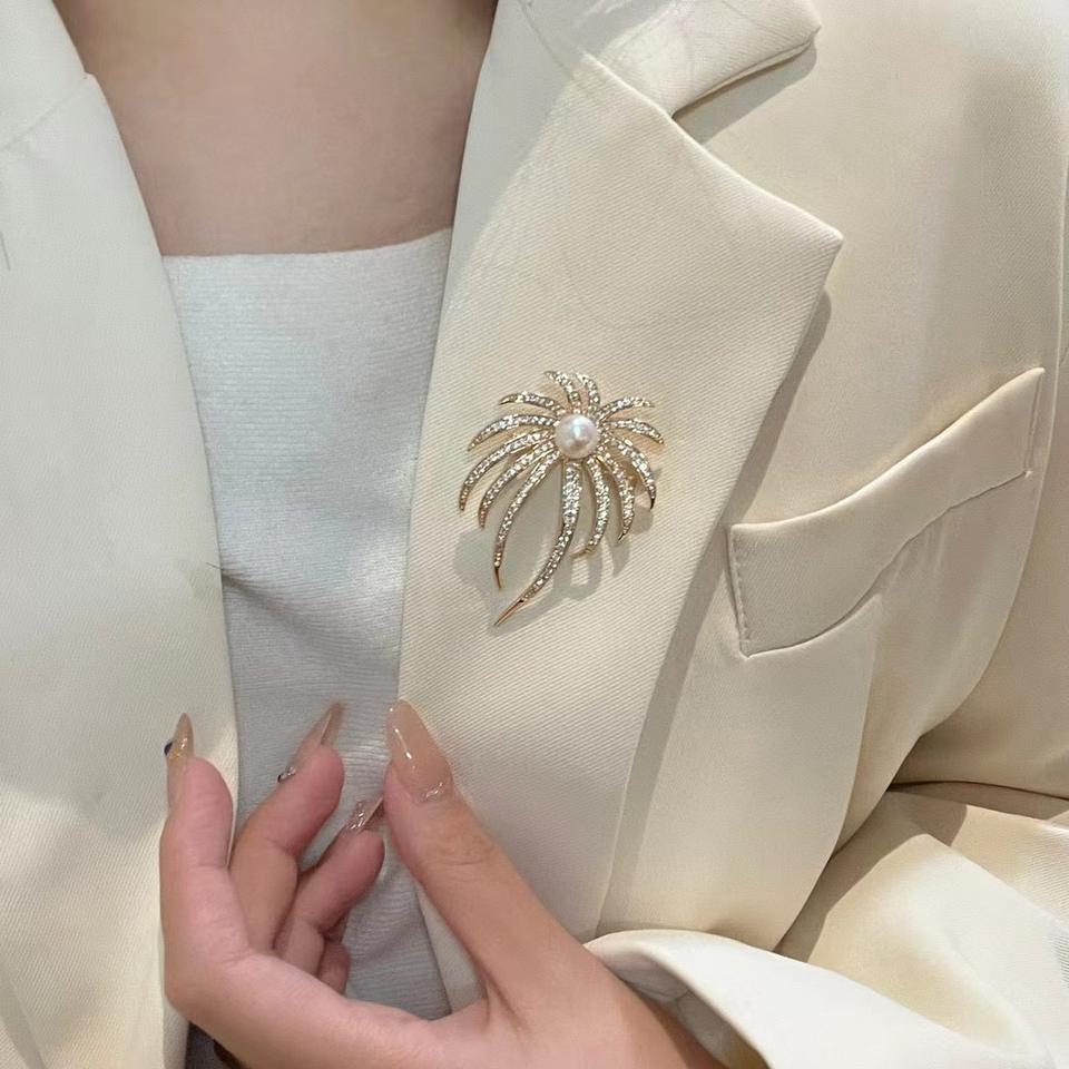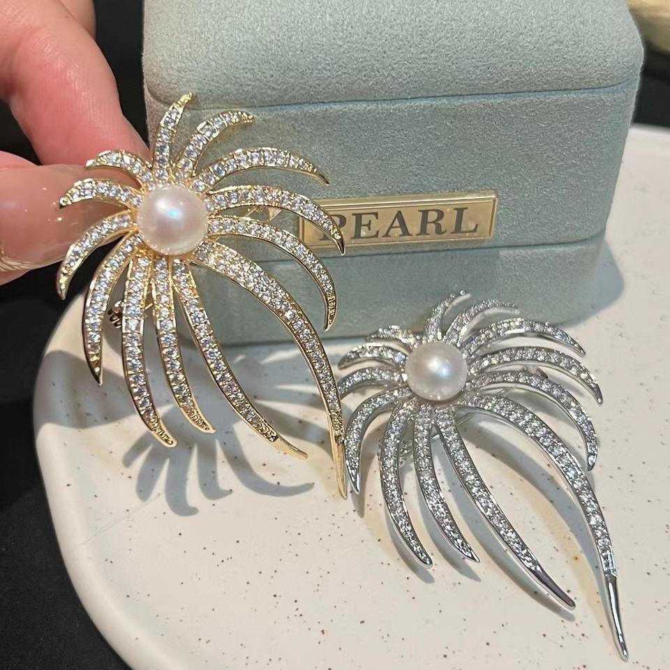 High Quality 8-9mm Freshwater Pearl Chest Flower Brooch Pins Joyful Clothing Accessories in Two Colors