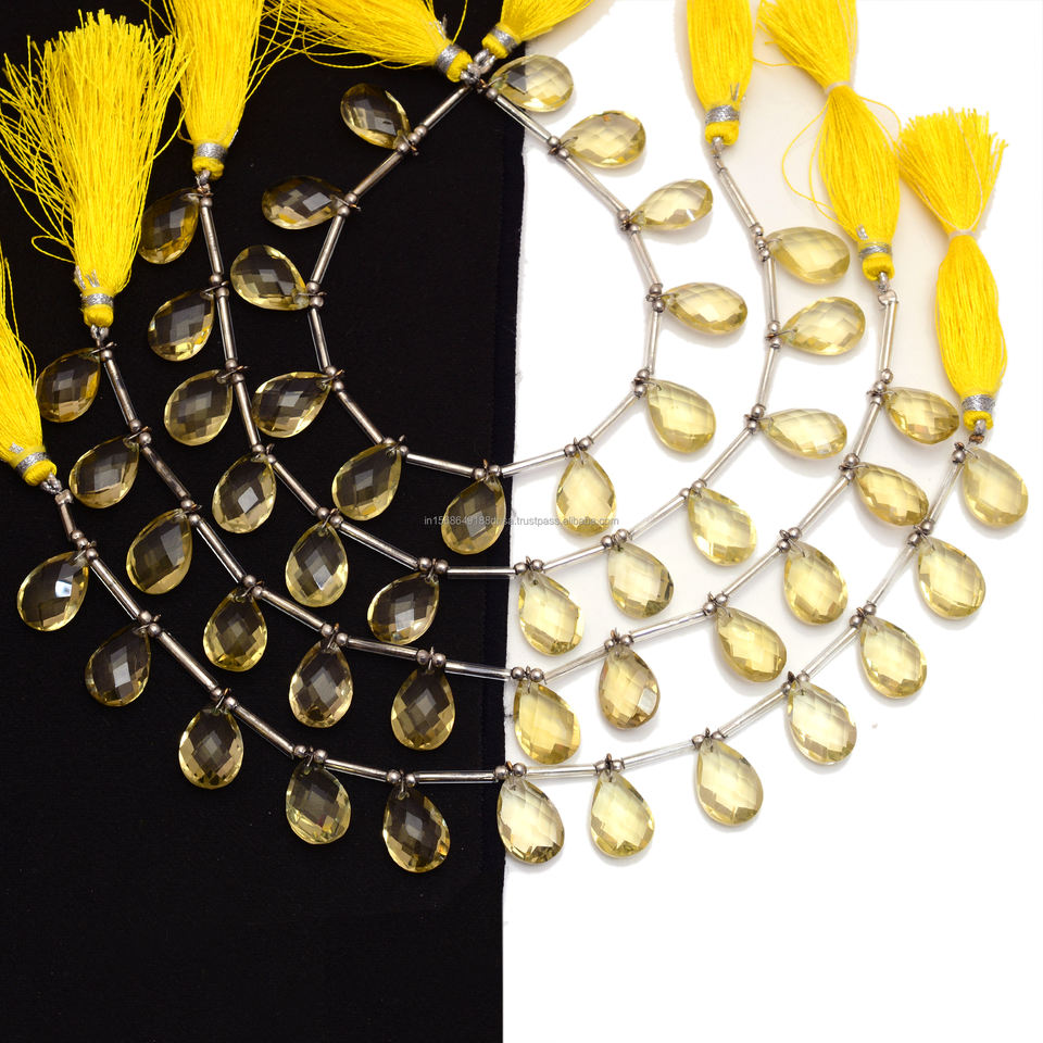 Haute qualité 8 pouces 15X10mm or vert naturel à facettes en forme de poire cristal pierres précieuses perles de pierre brin prix de lot de gros