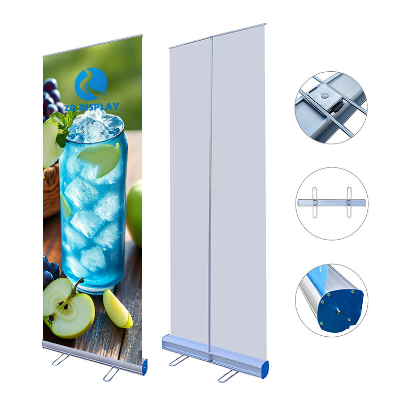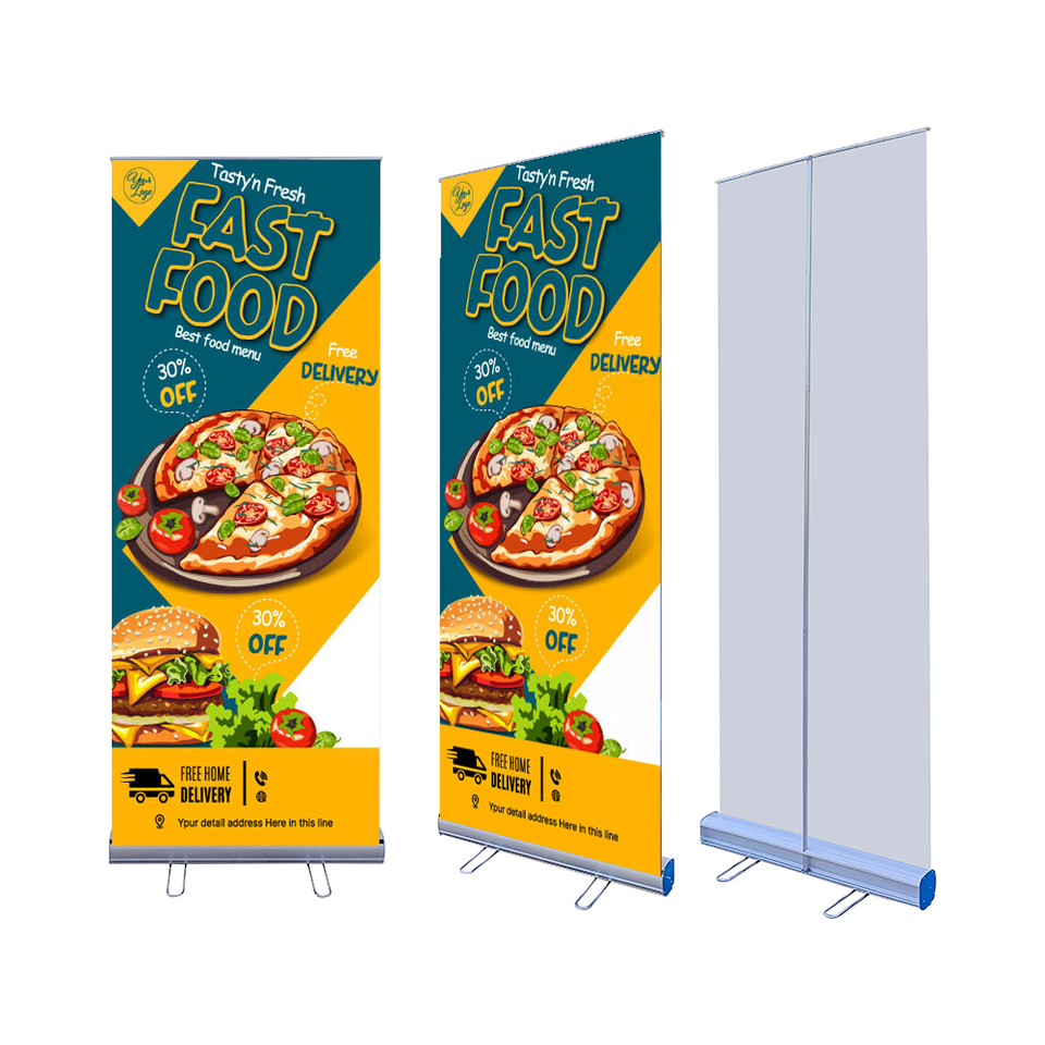 Support de bannière déroulante portable de haute qualité 85x200cm avec pieds en acier personnalisés, imperméable, pour exposition en extérieur, publicité