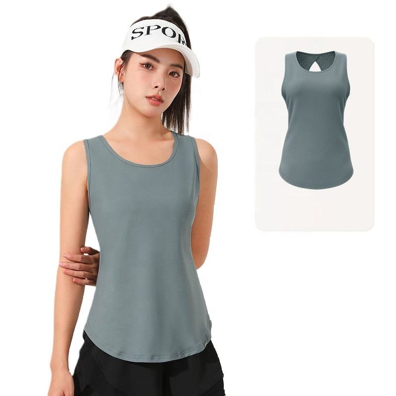 Haute qualité 88% Polyester 12% Spandex séchage rapide maille découpe dos nageur ourlet incurvé athlétique course Fitness Gym débardeur pour les femmes