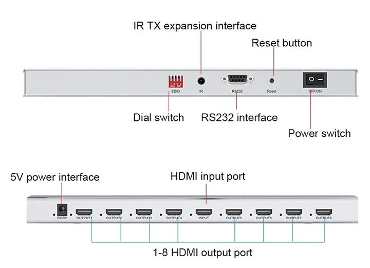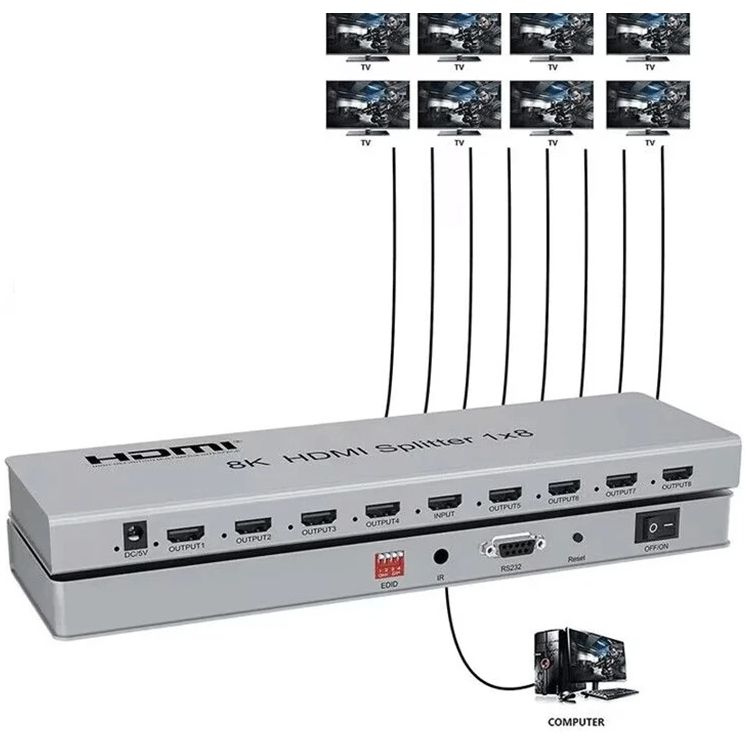 Séparateur HDMI 8K 60Hz 2.1 de haute qualité 8 ports 8 voies 4K 120Hz 7860x4320 3D 1 entrée 8 sorties UHD Edid répartiteur HDMI 1x8