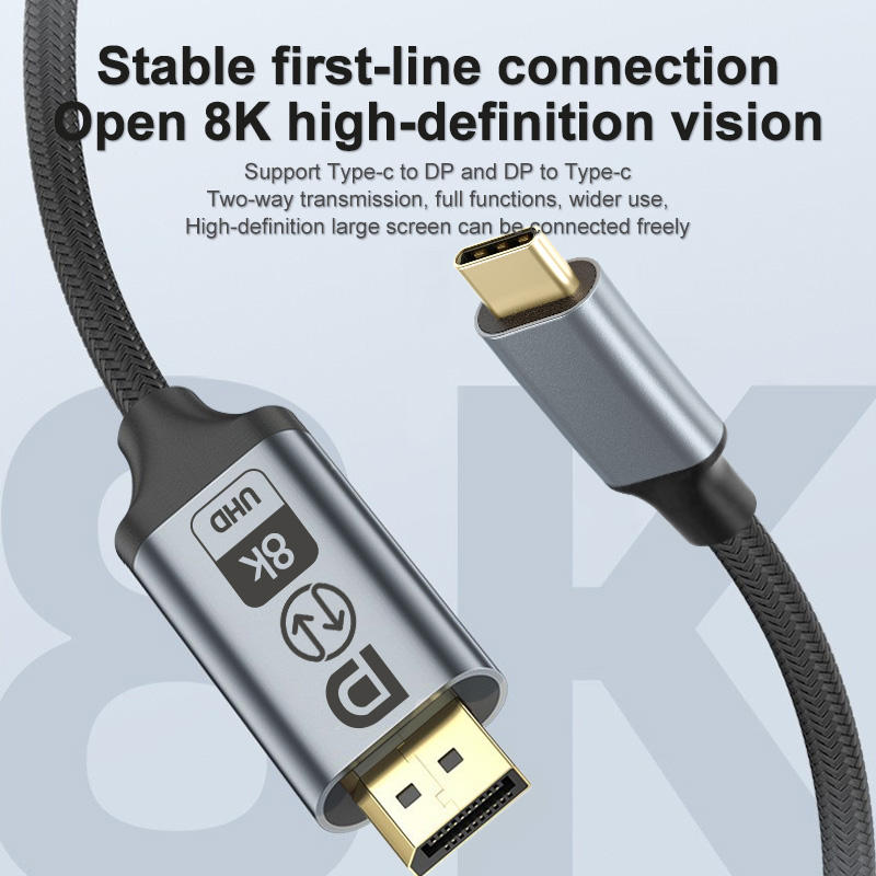 Câble USB C vers DP de haute qualité 8k 60hz, transfert de données bidirectionnel 4k240hz, câble Type-C vers DP pour ordinateur portable, ordinateur de bureau, MacBook, moniteur