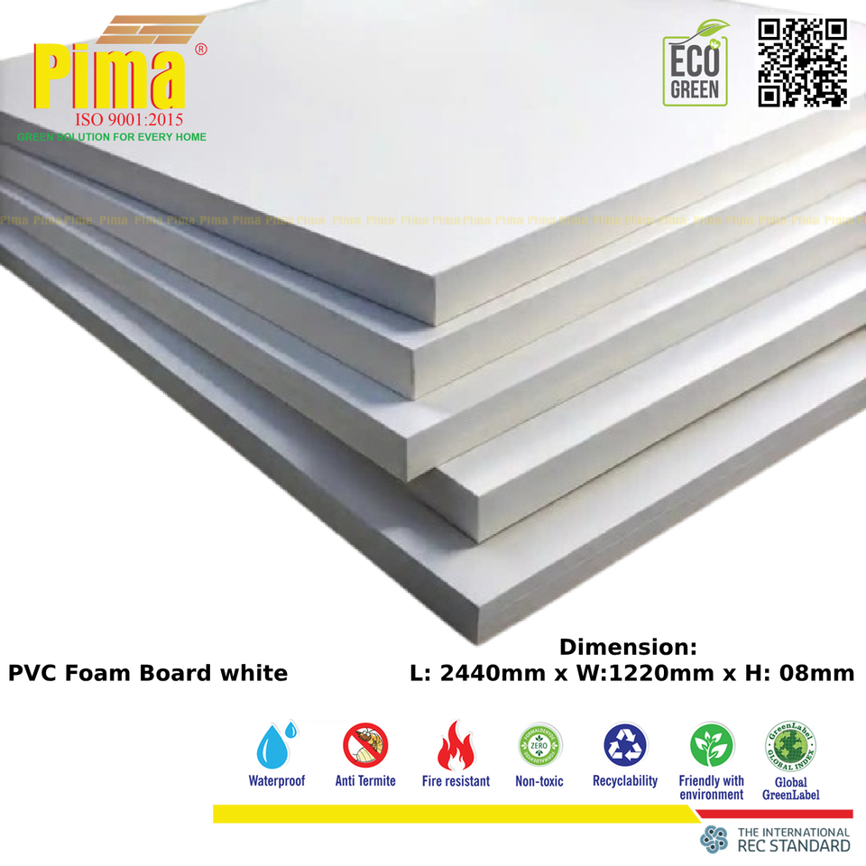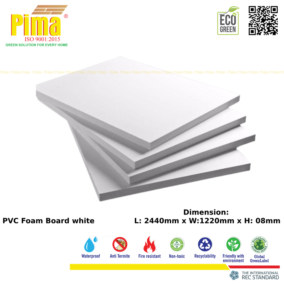 Feuille de panneau de mousse blanche de haute qualité de PVC WPC de 8mm panneaux de polyvinyle de densité de 0.6G/cm3 pour les meubles de signes de publicité faits sur commande d'intérieur