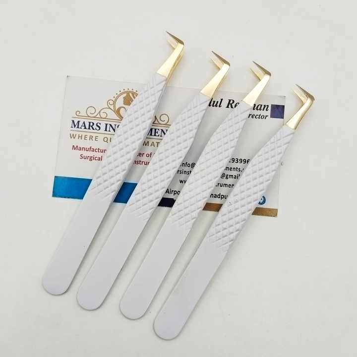 Pince à épiler professionnelle de haute qualité 90 Boot White avec embout doré pour extensions de cils – Prise parfaite, ne fait pas fondre les cils, pince solide