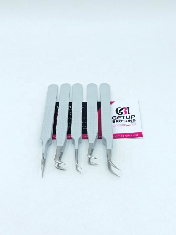 Pince à cils en acier inoxydable de haute qualité, revêtement gris, 90 degrés, volume russe, poignée diamantée incurvée à 45 degrés