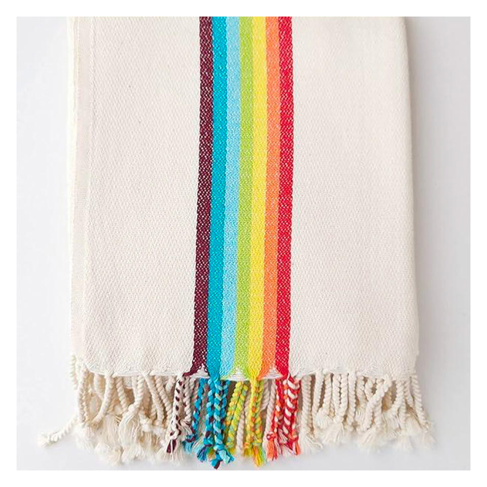 Haute qualité 90x180cm 350gr Turquoise arc-en-ciel Design Peshtemal Hammam serviette de bain mousseline coton absorbant turc pour l'été