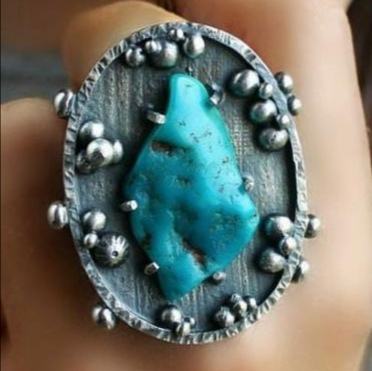 Turquoise Tibetan Rough Gemstone Solid Silver Statement Ring Jewelry