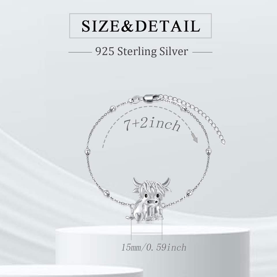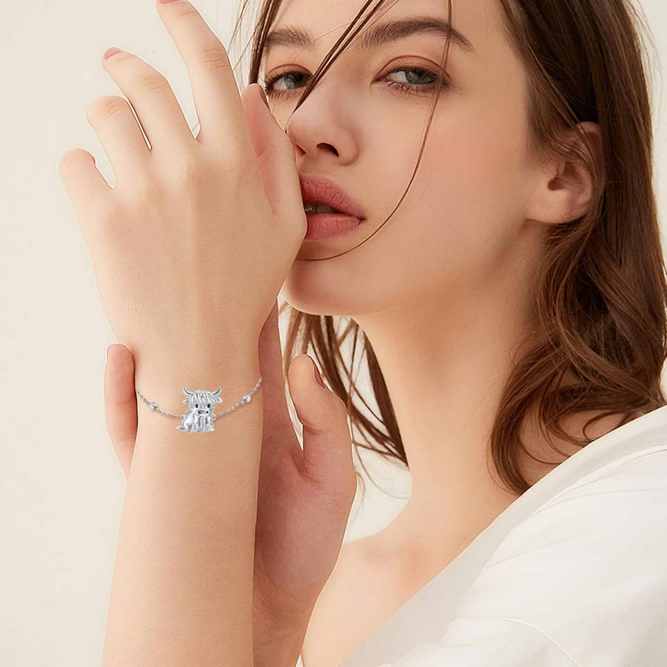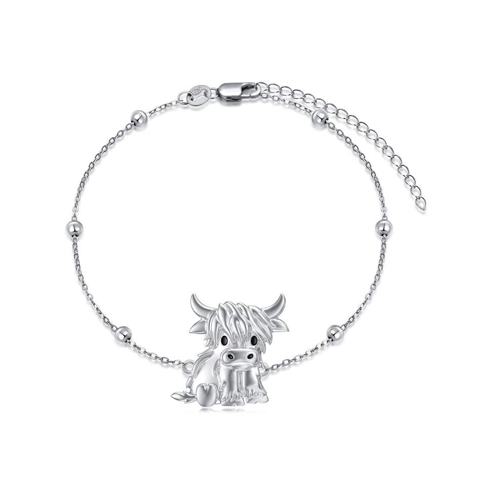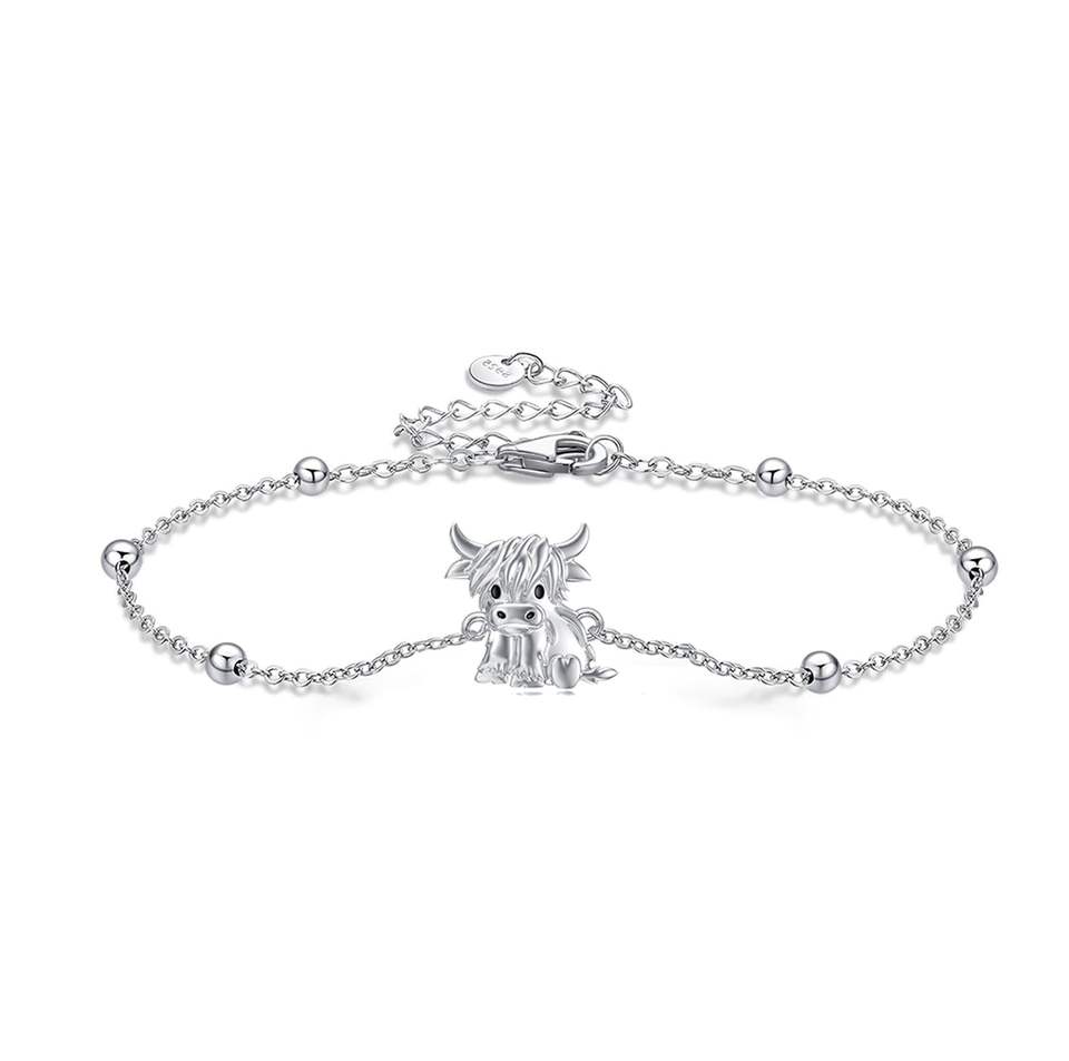 Bracelet de vache Highland Animal mignon réglable en argent sterling 925 de haute qualité
