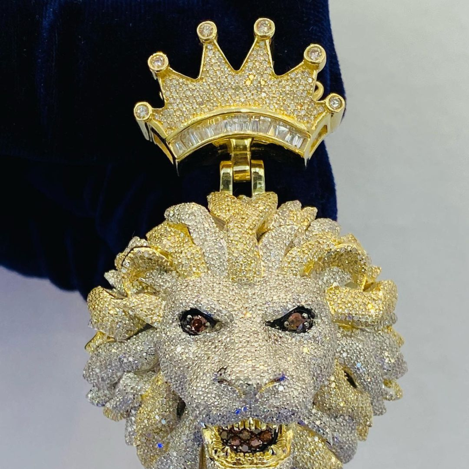 High Quality 925 Sterling Silver Customized Lion Pendant Iced Out Moissanite Diamond Round Cut Gold Plated Hip Hop Style