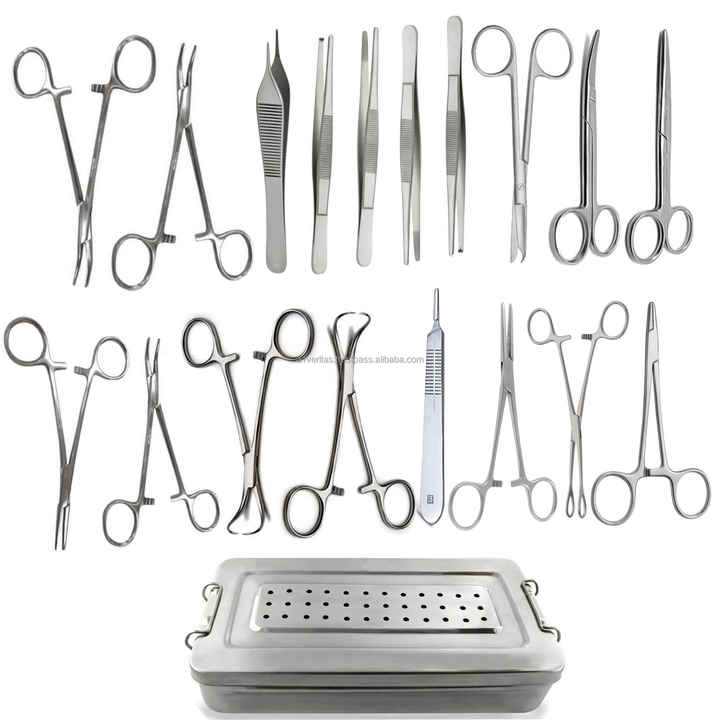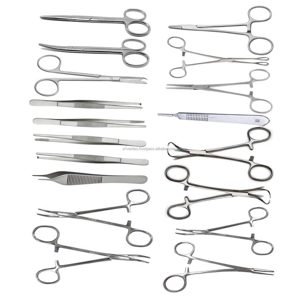 Ensemble d'instruments chirurgicaux de haute qualité A-1 VERITAS pour interventions chirurgicales mineures, 19 pièces, pour hôpitaux et cliniques | Hémoloque manuel réutilisable