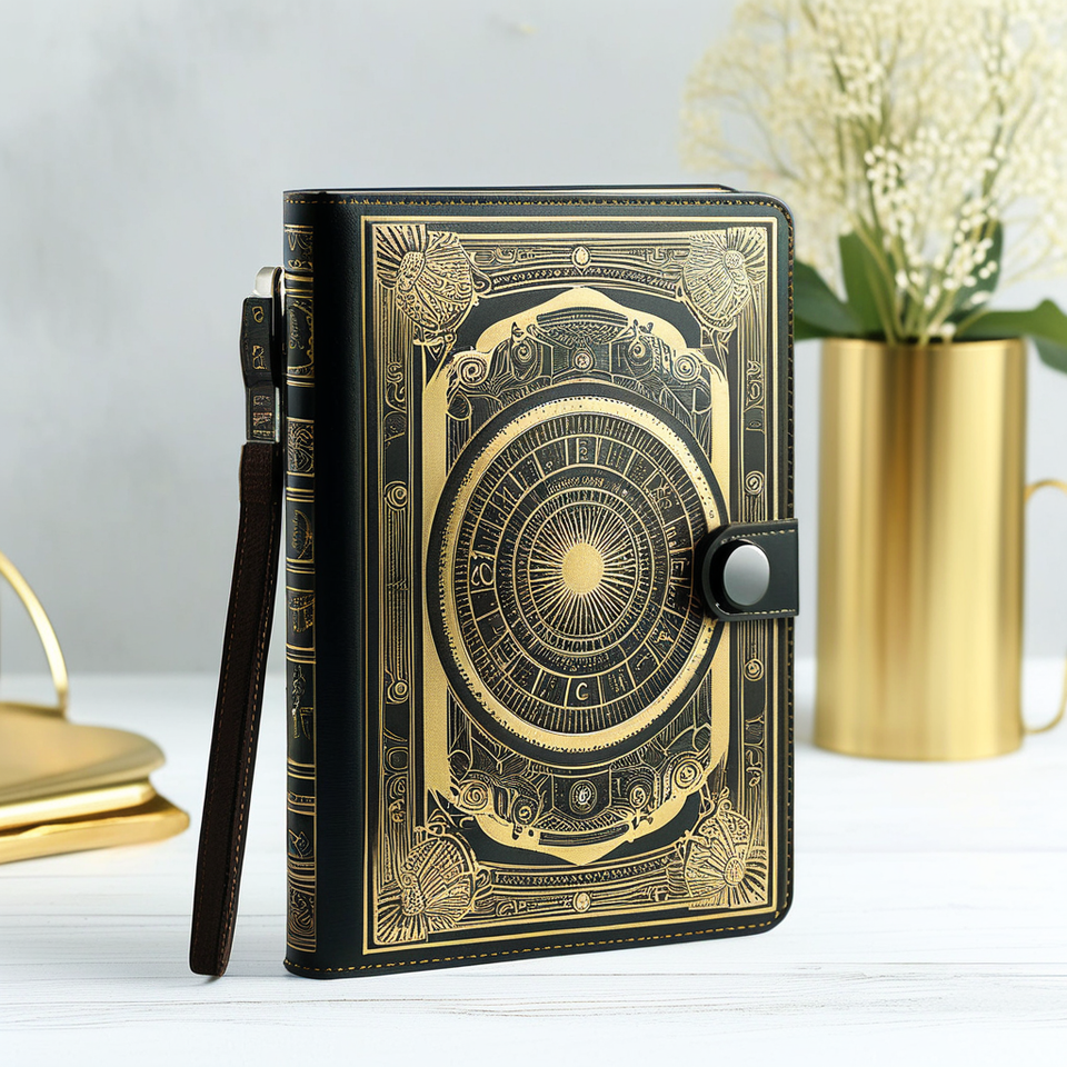 Journal intime en cuir PU noir taille A5 de haute qualité Cahier à reliure spirale de conception d'estampage doré avec bord doré