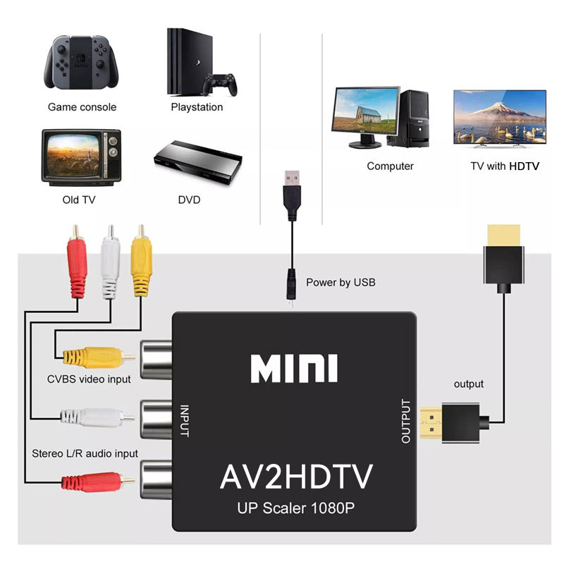 Adaptateur Convertisseur Composite Haute Qualité AV2HD MI RCA AV vers HDTV 1080P Câble Audio Vidéo CVBS AV avec Câble USB