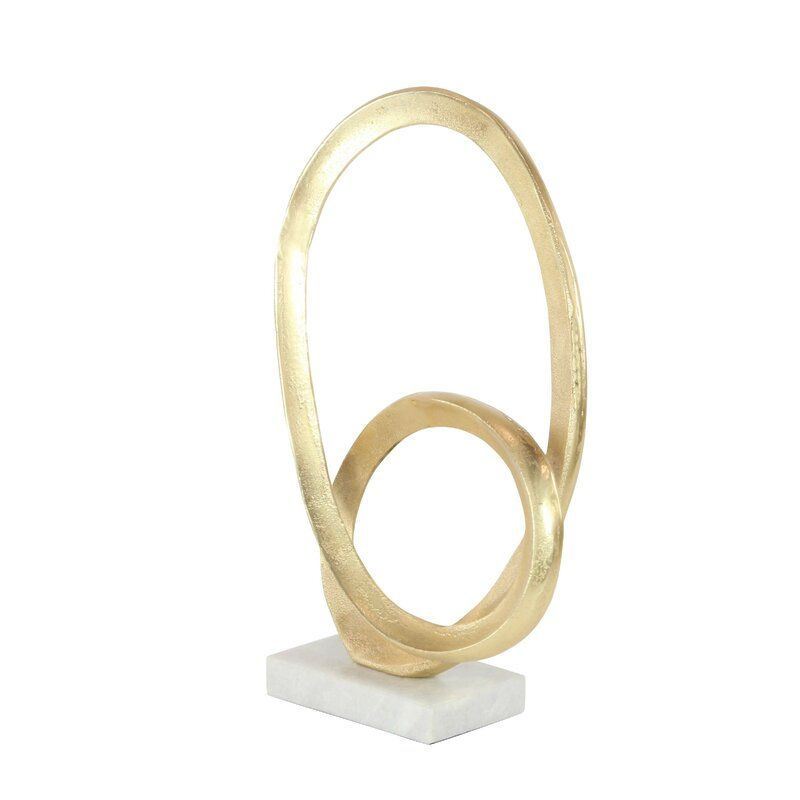 Sculpture en métal doré abstraite de haute qualité, base en marbre blanc, table en aluminium faite à la main, décoration d'intérieur, salon