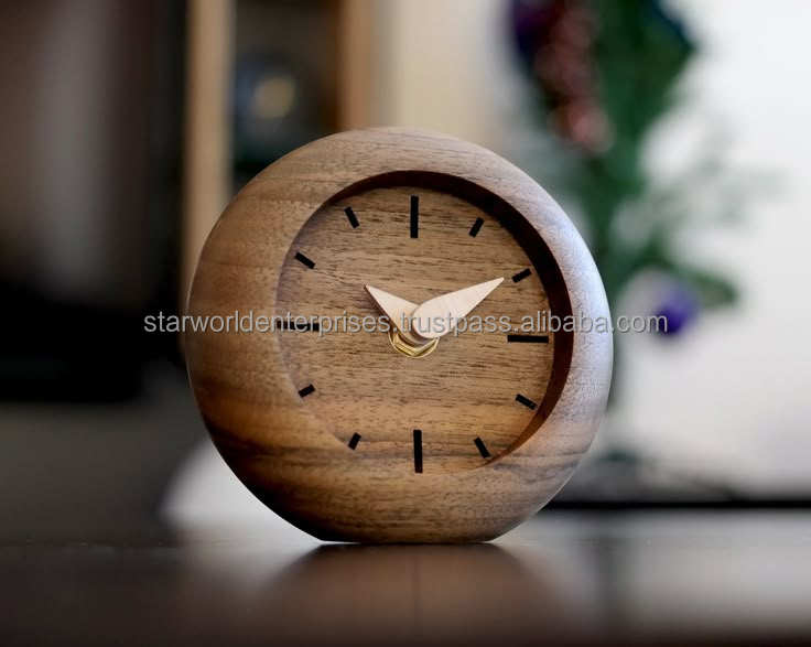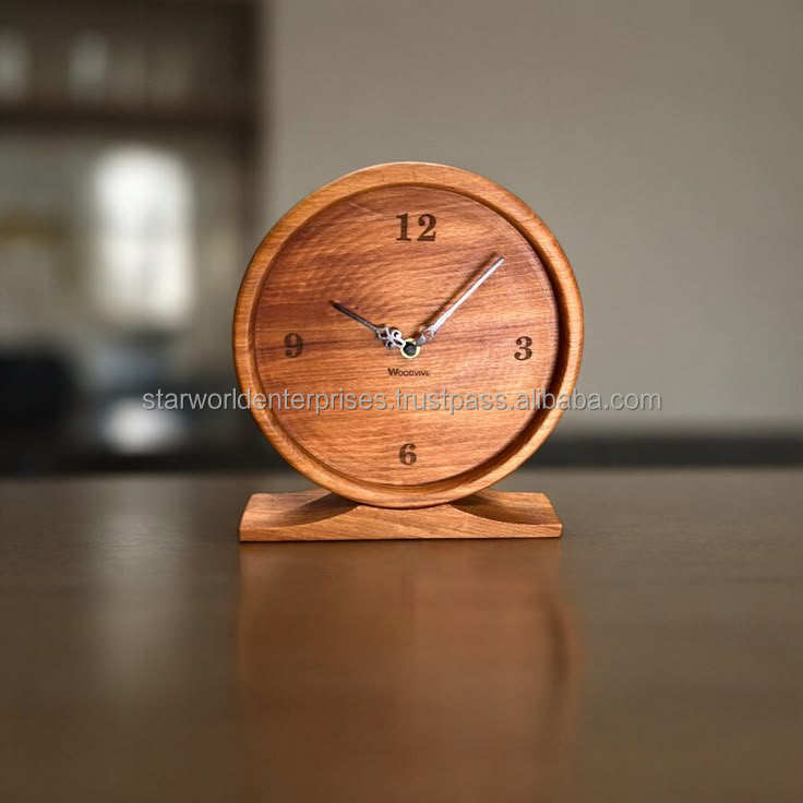 Horloge de Table en bois d'acacia de haute qualité horloge murale décorative pour salon chambre bureau artisanat fait à la main de l'inde