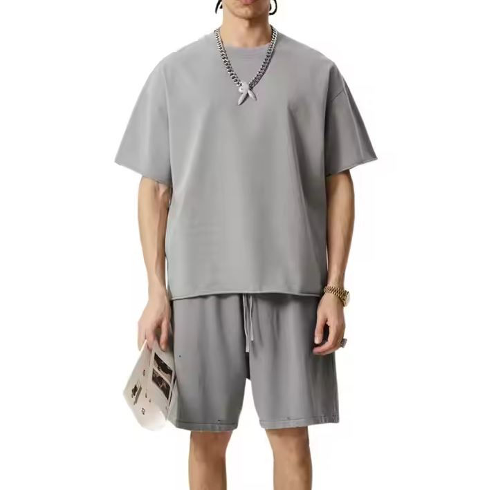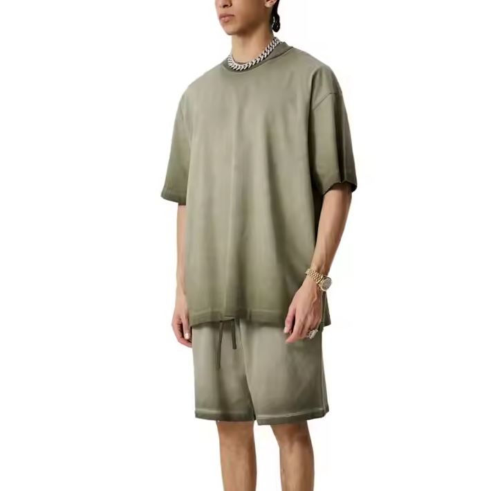 Ensembles de shorts lavés à l'acide de haute qualité pour hommes T-shirt et short sérigraphiés personnalisés pour l'été Ensemble 2 pièces Couleur contrastée