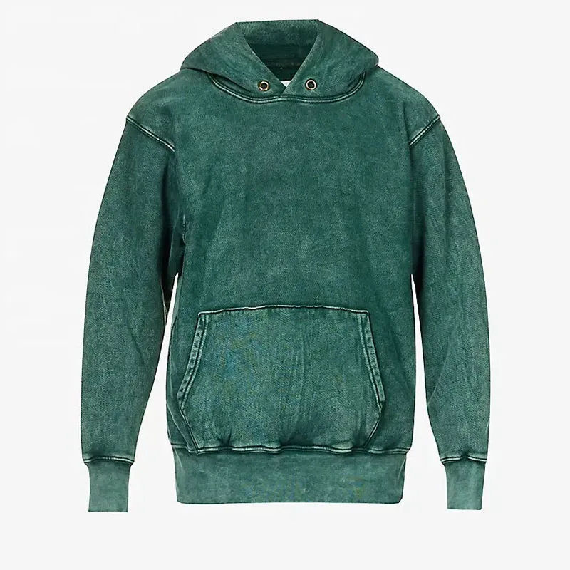 Sweat à capuche délavé à l'acide de haute qualité, 100 % coton molletonné, couleur grise, modèle basique OEM/ODM, en coton mélangé uni