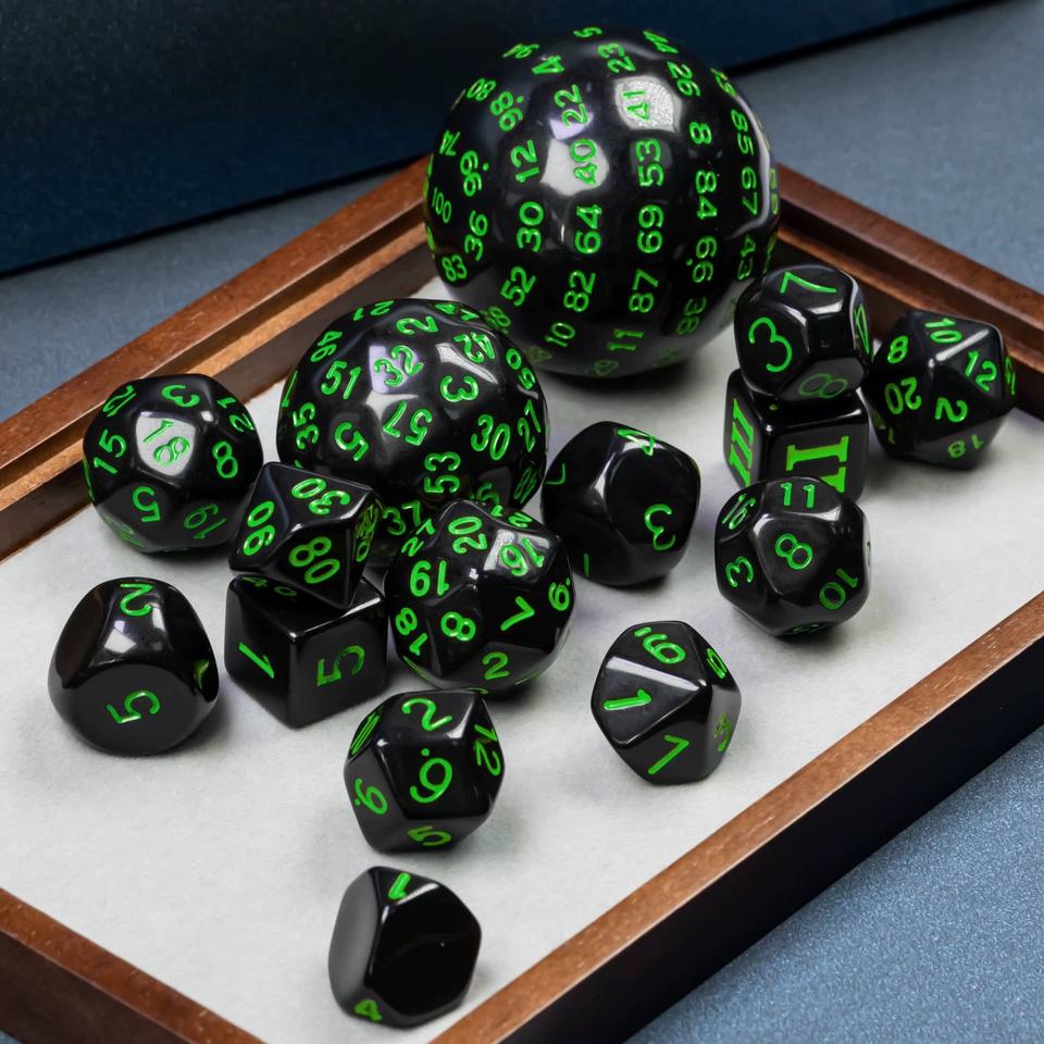 Ensemble de dés polyédriques en acrylique de haute qualité pour jeux de rôle (RPG) et Dungeons and Dragons, 15 pièces (D20, D3-D100)