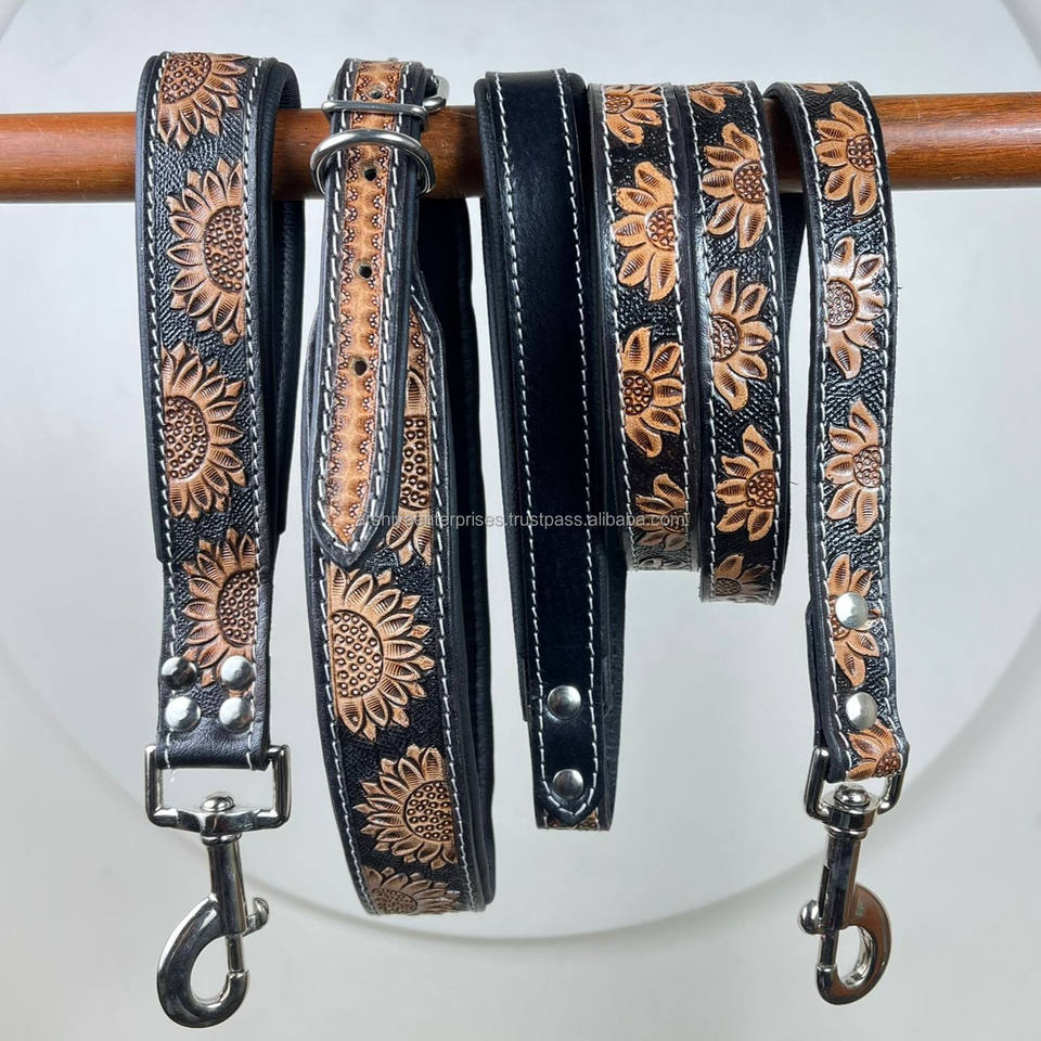 Product Name:Hand Tooled Genuine Leather Dog Leash Set