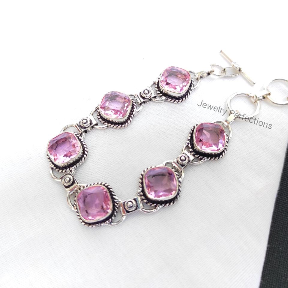 Product name:Rose Quartz Crystal Silver Plated Bracelet