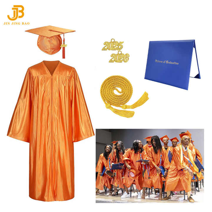 Robes et casquettes de remise des diplômes orange brillant pour adultes de haute qualité