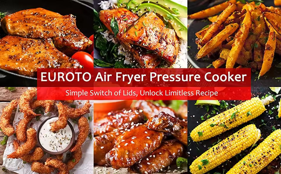 Cuisinière à pression et friteuse à air tout-en-un de haute qualité avec double couvercle, fonction mijoteuse et plus encore, écran tactile numérique, capacité de 6 L