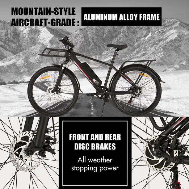 Alliage d'aluminium de haute qualité 26 pouces 36V 10.4 AH VTT électrique pour adultes Cargo vélo hybride route E vélo