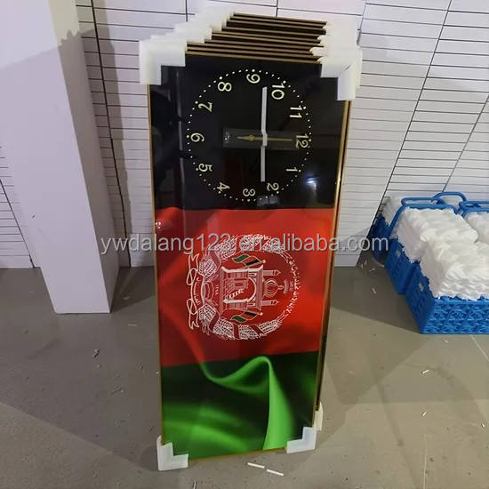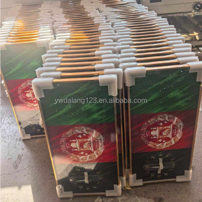 Cadre en aluminium de haute qualité, lumière LED 5D, design drapeau afghan, horloge murale en porcelaine de luxe, peinture sur le mur