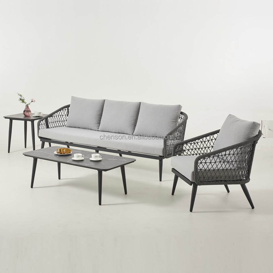 Ensemble d'extérieur en aluminium de haute qualité, canapé de jardin d'hôtel tressé avec table basse en HPL