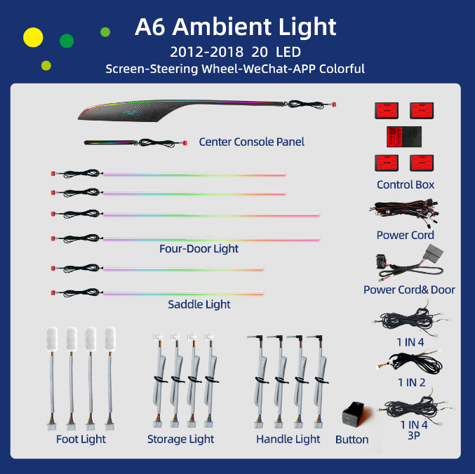 Kit d'éclairage d'ambiance de haute qualité pour Audi A6 C7 C8 - Ajustement spécifique au véhicule - Luminosité réglable - Performance sans scintillement