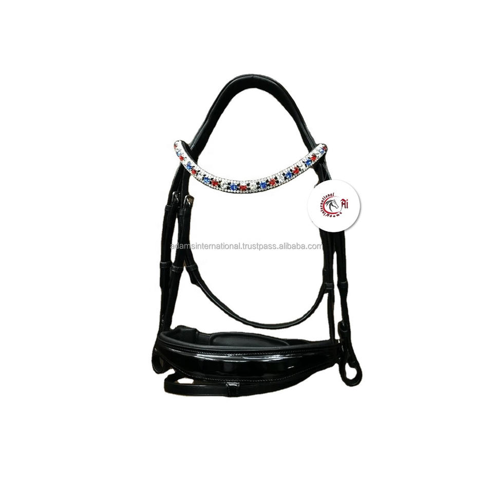 Bride en cuir anatomique de haute qualité pour chevaux renforcée avec des strass de qualité les plus solides Produits pour chevaux haut de gamme