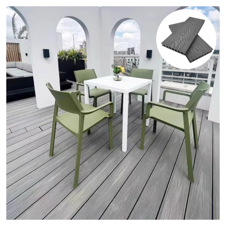 Planche de terrasse en WPC anti-UV de haute qualité, imperméable, avec revêtement, gaufrage 3D, revêtement de sol extérieur en WPC
