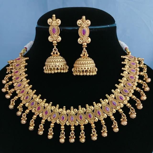 High Quality Antique Golden Necklace Set Gold Plated Necklace Set With Earrings For Wedding Wear Collection For Women