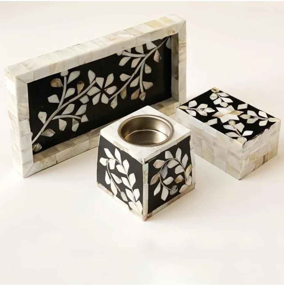 Ensemble de boîte et plateau brûleur de Bakhoor de haute qualité, style Axiom, avec incrustation de nacre arabe religieuse, parfum Fraise Anis étoilé, pour décoration intérieure, Inde