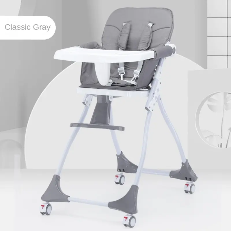 Chaise haute pour bébé de haute qualité pliable Portable hauteur réglable stockage en un clic chaise de salle à manger pour bébé avec roues