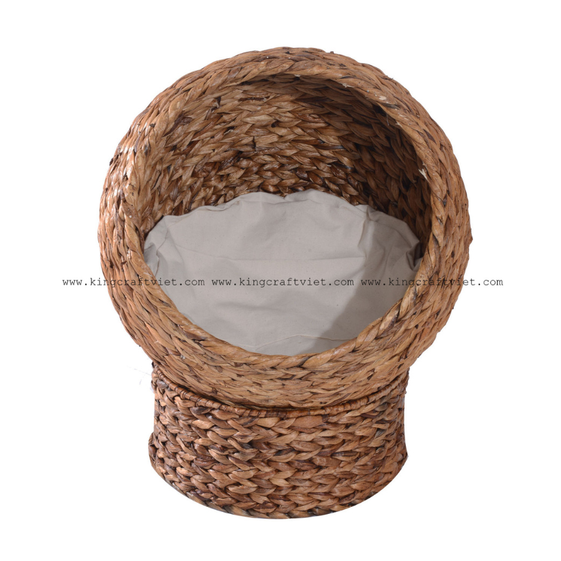 High Quality Bamboo Wood Water Hyacinth Pet Bed Striped Pattern Rustic Style Travel Feature Natural Color Custom Size for Cats