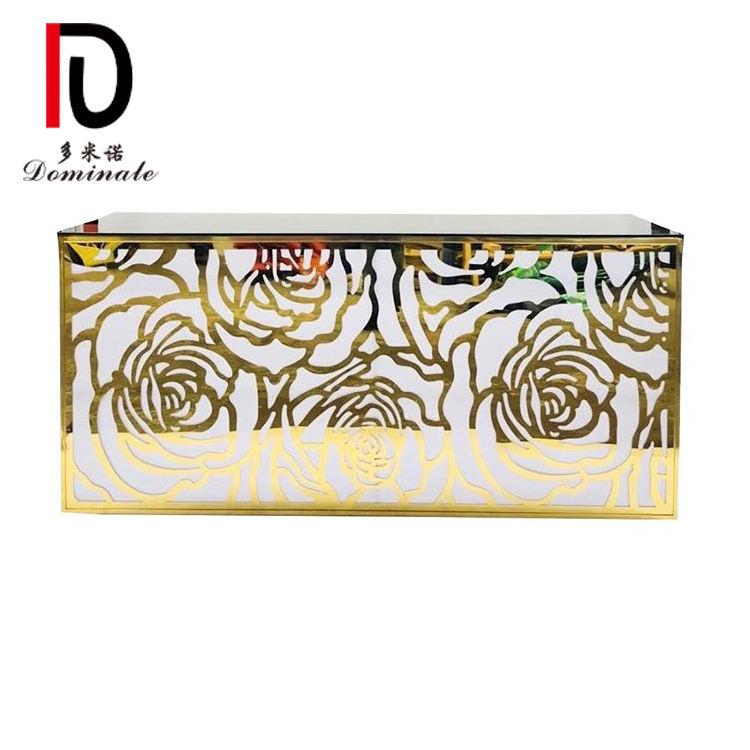 Comptoir de haute qualité, événement, mariage, rectangle de luxe en acier inoxydable, or, noir, personnalisé