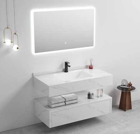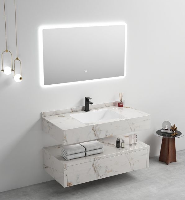 Meuble-Lavabo de Salle de Bain de Haute Qualité Design Moderne Vasque en Céramique avec Tiroir Mural en Pierre Frittée Meubles-Lavabos de Salle de Bain Miroir de Bain